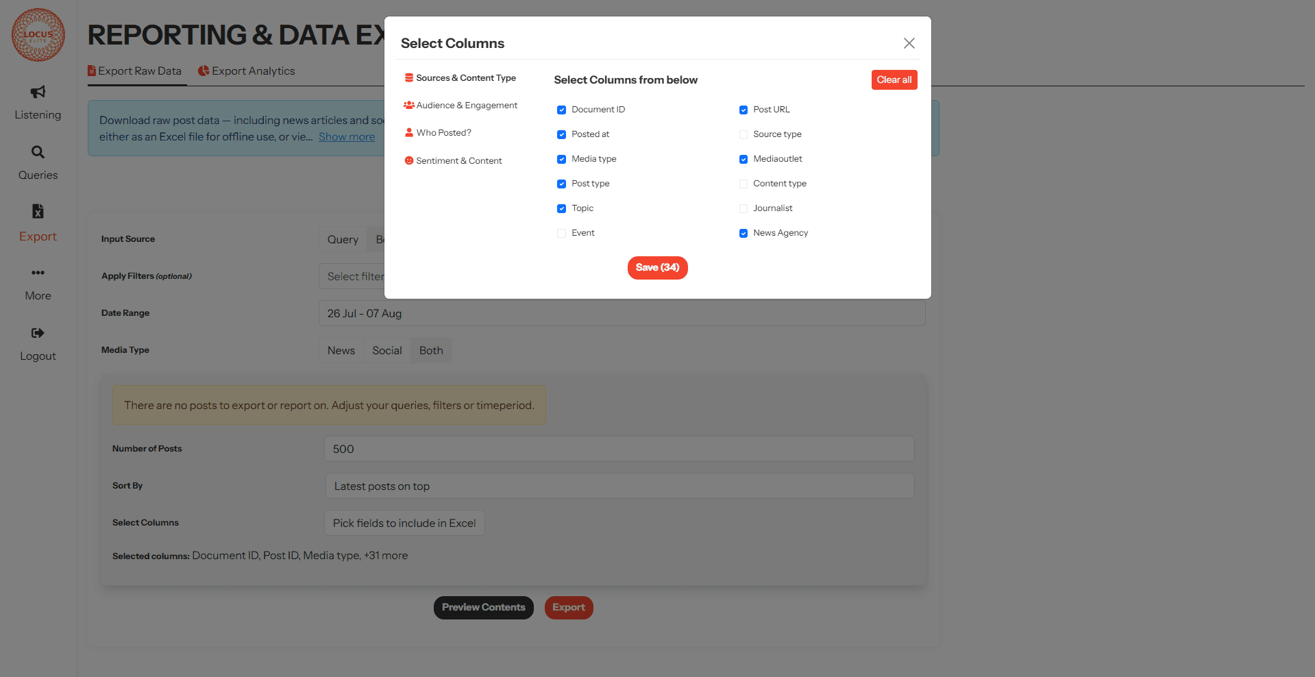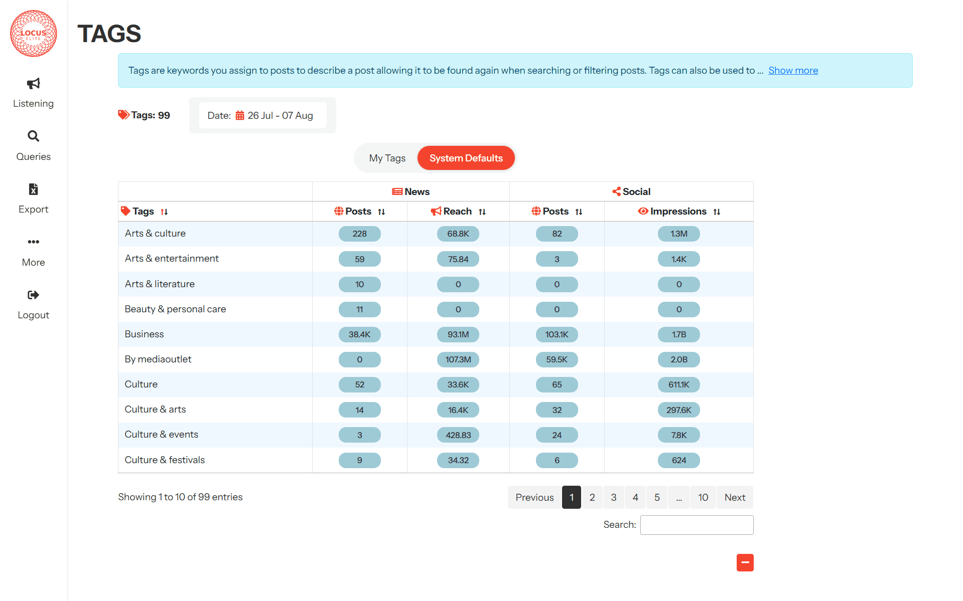 The Media Listening product tab in app provides news, social media, and broadcast monitoring all on one dashboard, delivering comprehensive and complete coverage across sources.