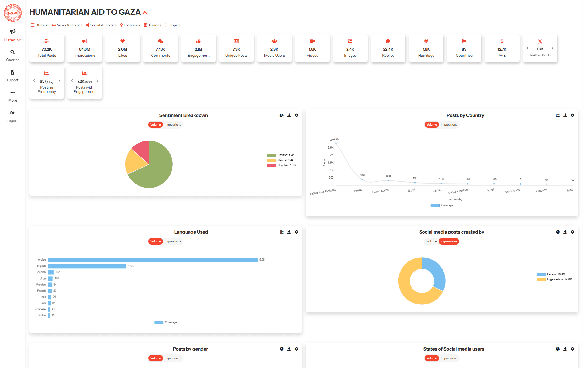 Watch coverage spikes, engagement flows, and sentiment trends unfold through interactive dashboards, with the ability to drill down instantly.