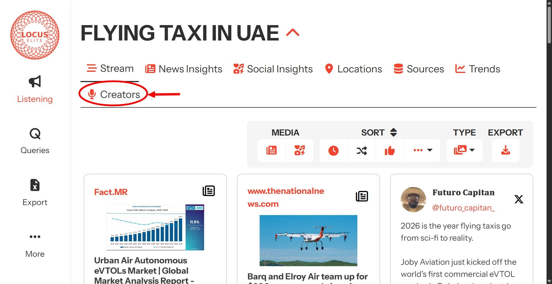 Together, these three views ensure that influence in Locus Elite is measured accurately and responsibly. By separating reach, frequency, and engagement, the Creators feature avoids misleading conclusions based on inflated numbers or superficial visibility. Every creator surfaced reflects genuine activity and real audience interaction, giving teams a clear, decision-ready understanding of who is speaking, who is being heard, and who is influencing how narratives evolve.