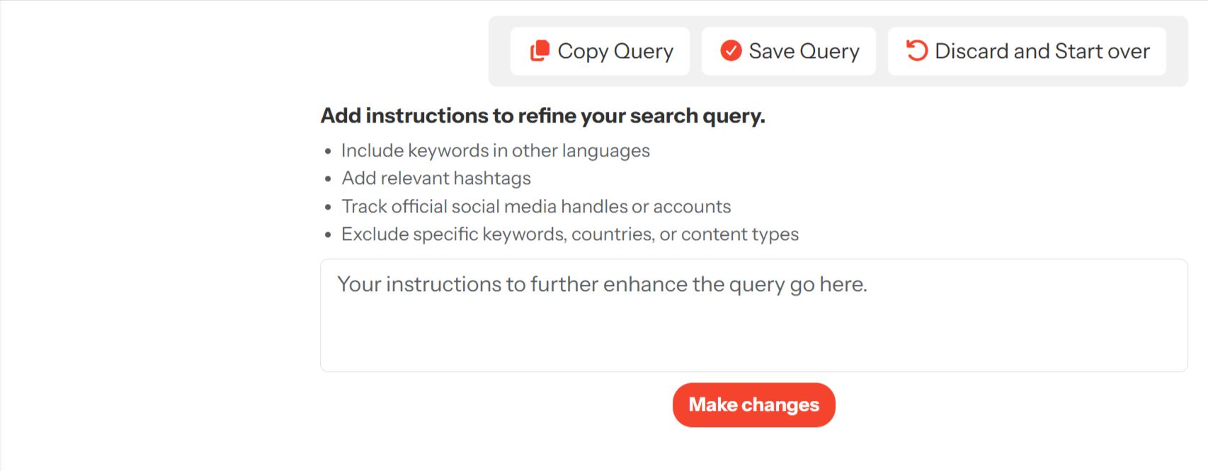Whether you're monitoring emerging risks, public conversations, industry developments, brand mentions, or regulatory discussions — the AI translates your objective into a precise, optimized query.