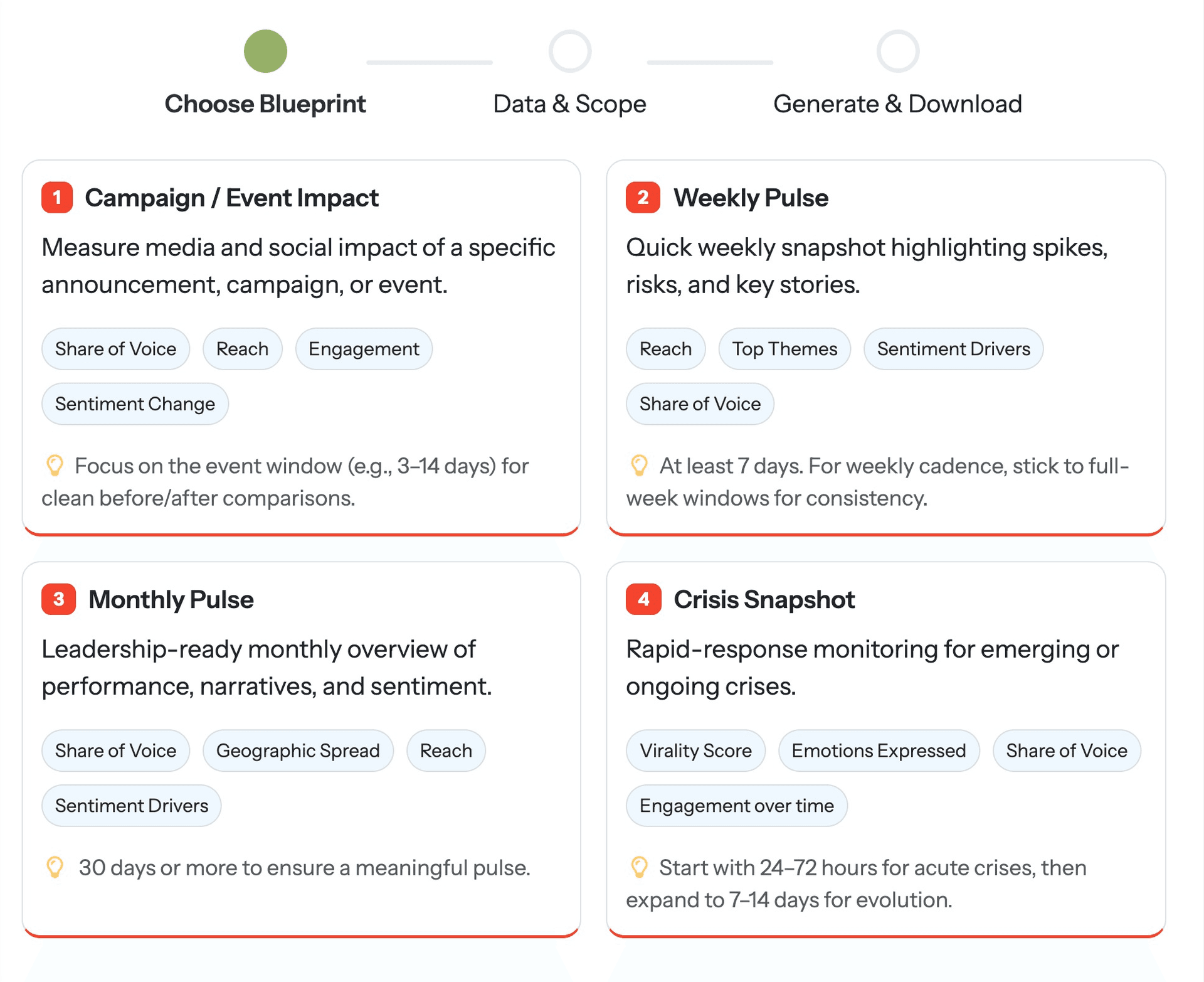 Instead of manually exporting data, building charts, and formatting slides, you can now select your queries and automatically generate a complete report with pre-configured KPIs, visualizations, and structured insights โ all aligned to your specific reporting objective.