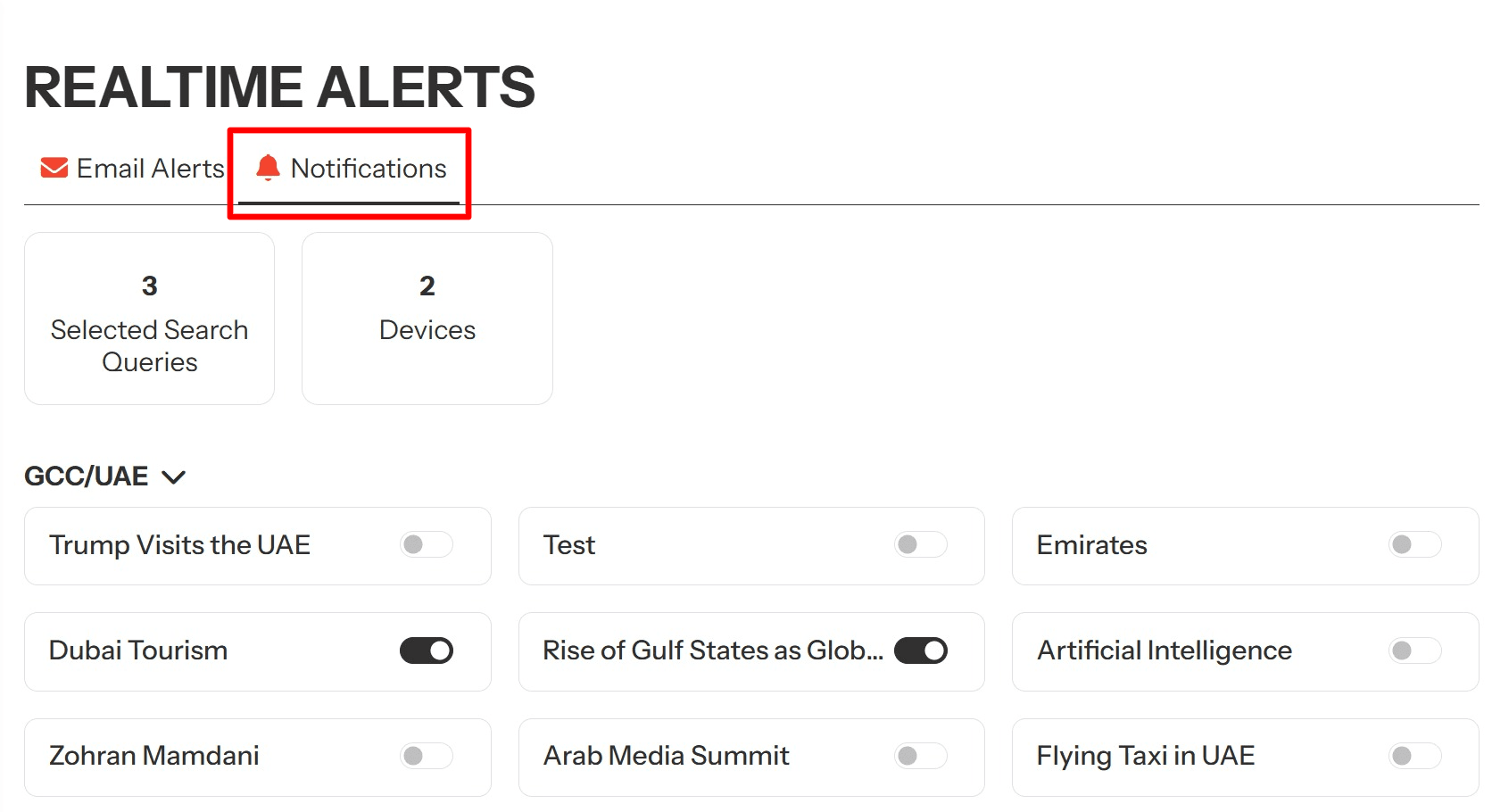 Simply toggle mobile notifications on or off for individual search queries, choosing exactly which topics deserve immediate attention. This ensures you stay focused on high-priority narratives without unnecessary distractions.