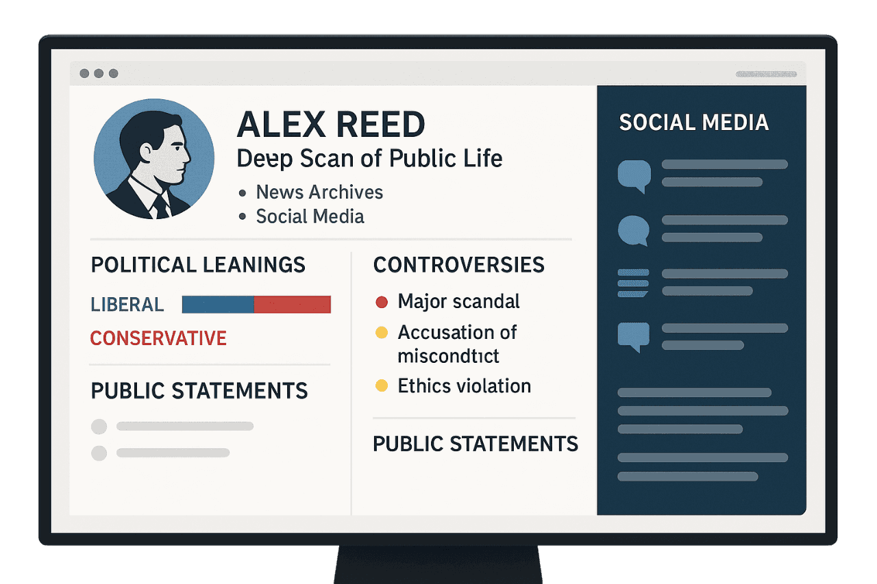 In-Depth Background Analysis: Comprehensive scans of news and social media for a complete overview.